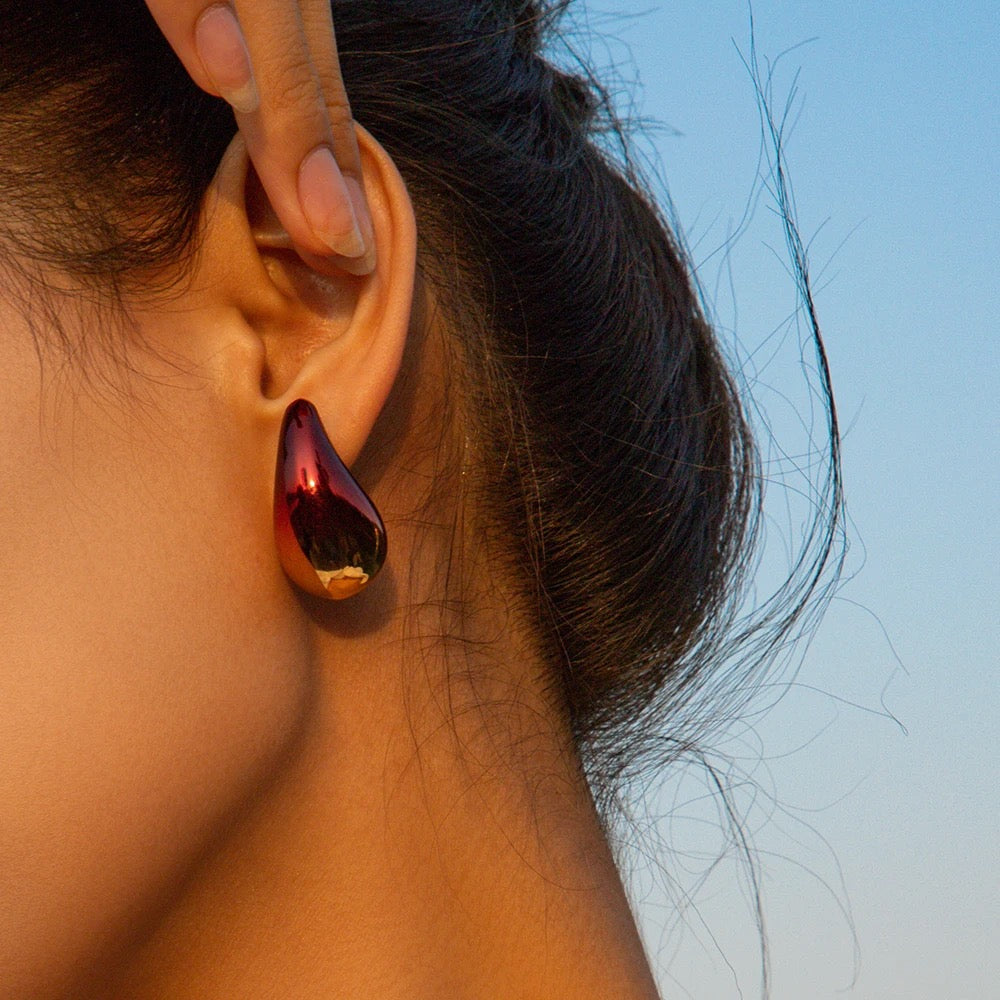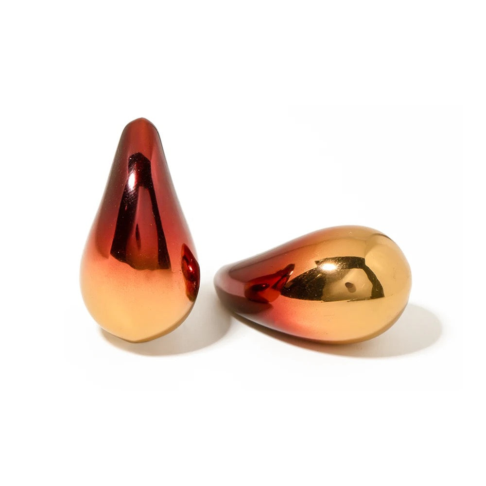 Ces boucles d’oreilles en forme de goutte sont parfaites pour ajouter une touche d’éclat à votre style. Elles ont une finition brillante avec un dégradé de couleur du rouge au doré. La partie supérieure des boucles d’oreilles est rouge foncé et se transforme progressivement en une teinte dorée scintillante vers la base. Les boucles d’oreilles sont faites en acier inoxydable, indiquant qu’elles sont durables et résistantes à la ternissure.